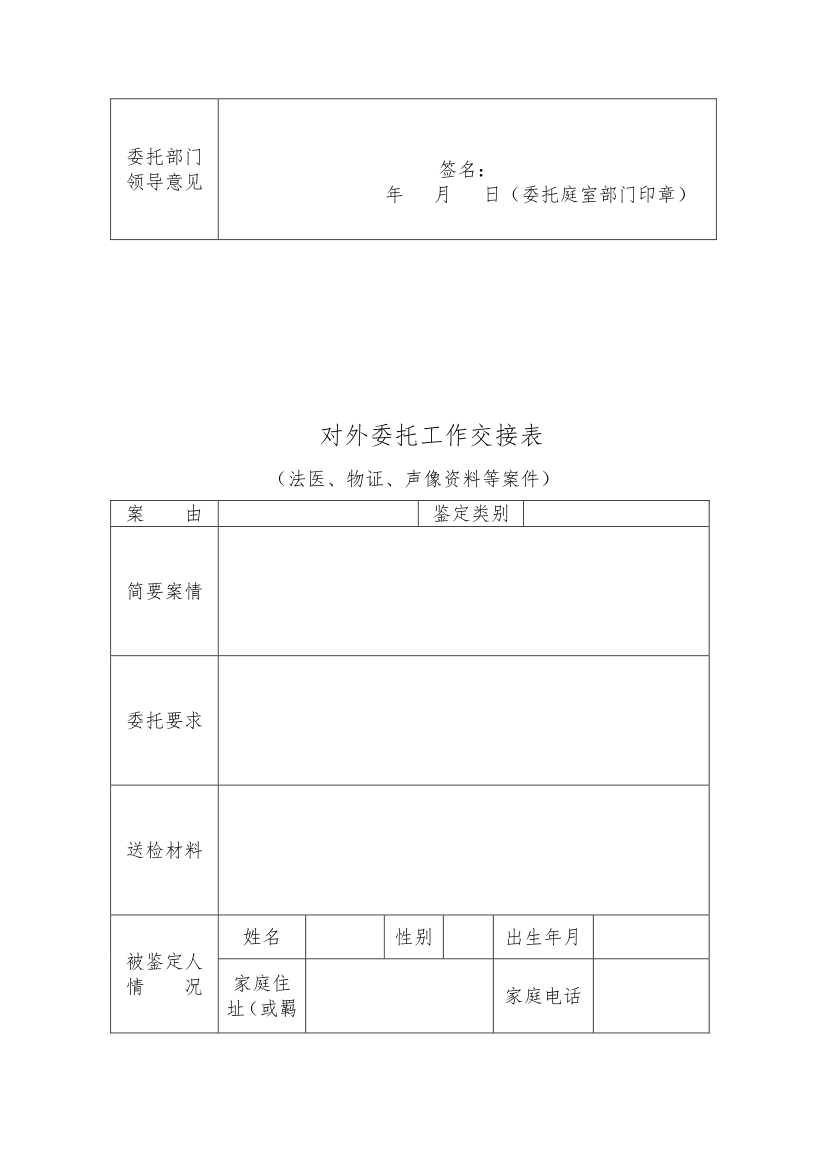 第八条 审判、执行部门在工作中对需要进行对外委托工作的,应当制作《司法技术委托交接表》,同卷宗及相关资料移送司法技术部。
